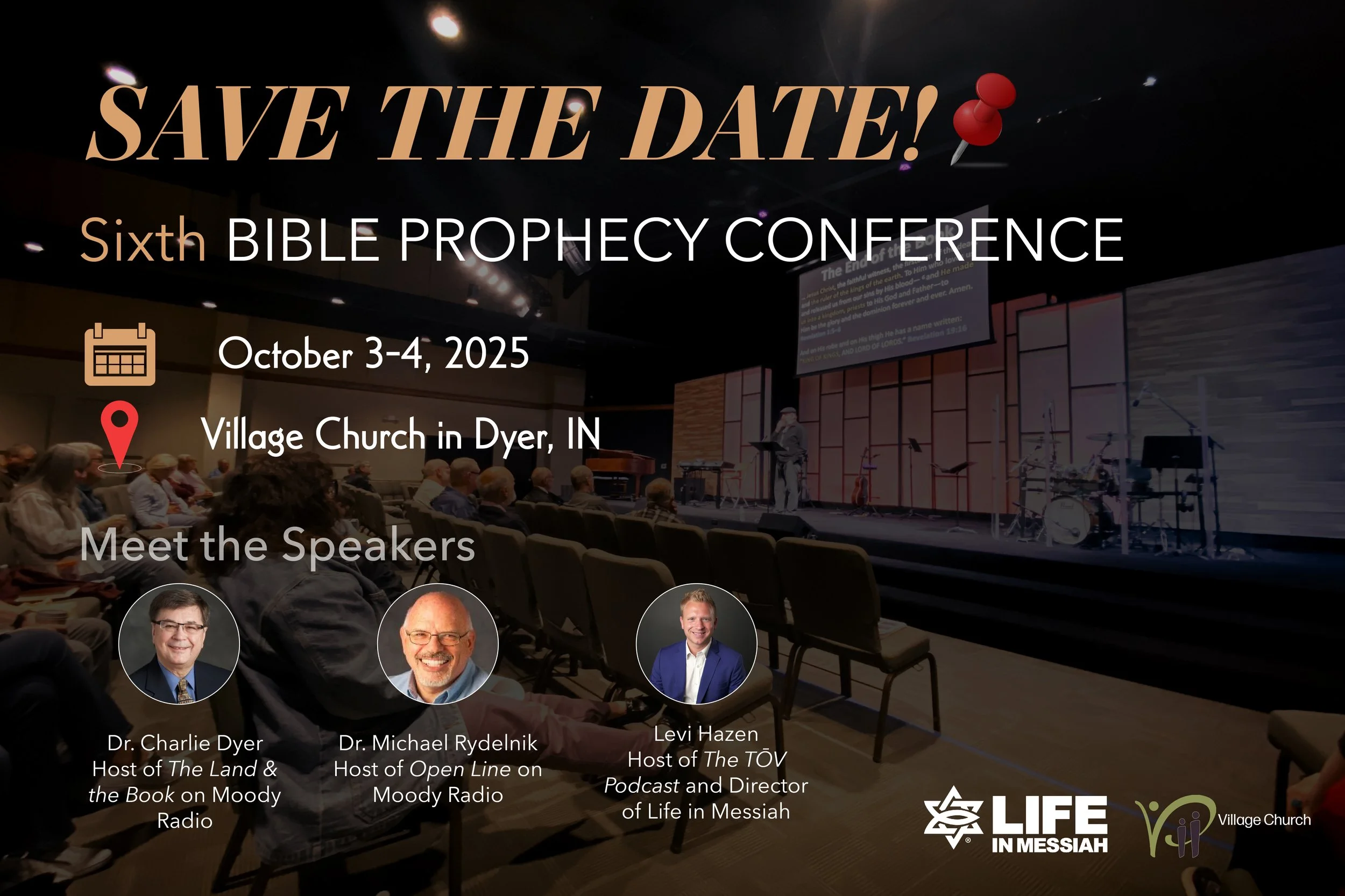 Join us at Village Church in Dyer, IN for our Sixth annual Bible Prophecy conference on October 3-4.