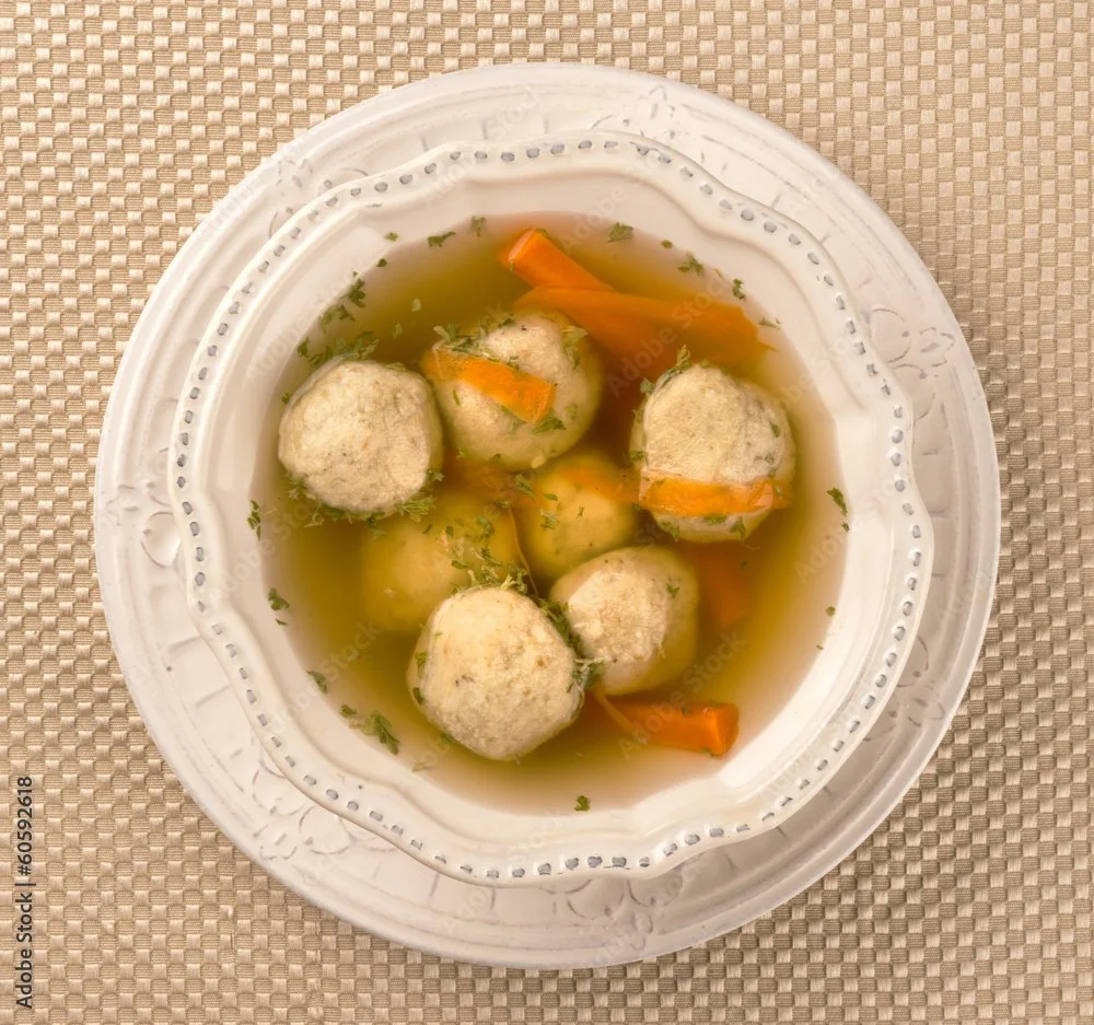 With a slotted spoon, carefully remove matzo balls and place one in each soup bowl. Ladle soup over top and serve.