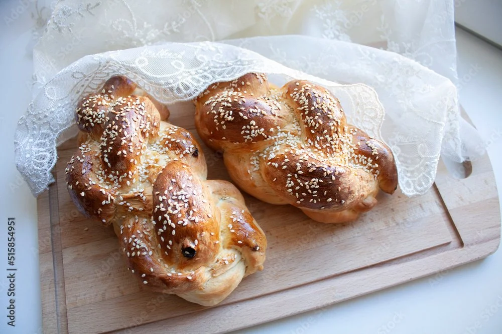 Bake challah 30–35 minutes (begin checking the bread from 20 minutes on), until the top of the bread is golden brown. There should be a hollow sound when you tap the bottom of the bread.